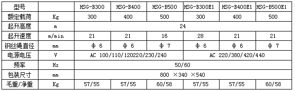 HSG-B500E1推式微型電動葫蘆參數(shù)表: